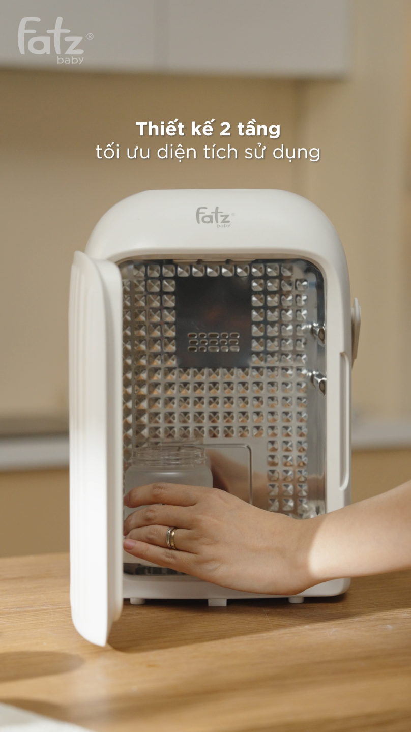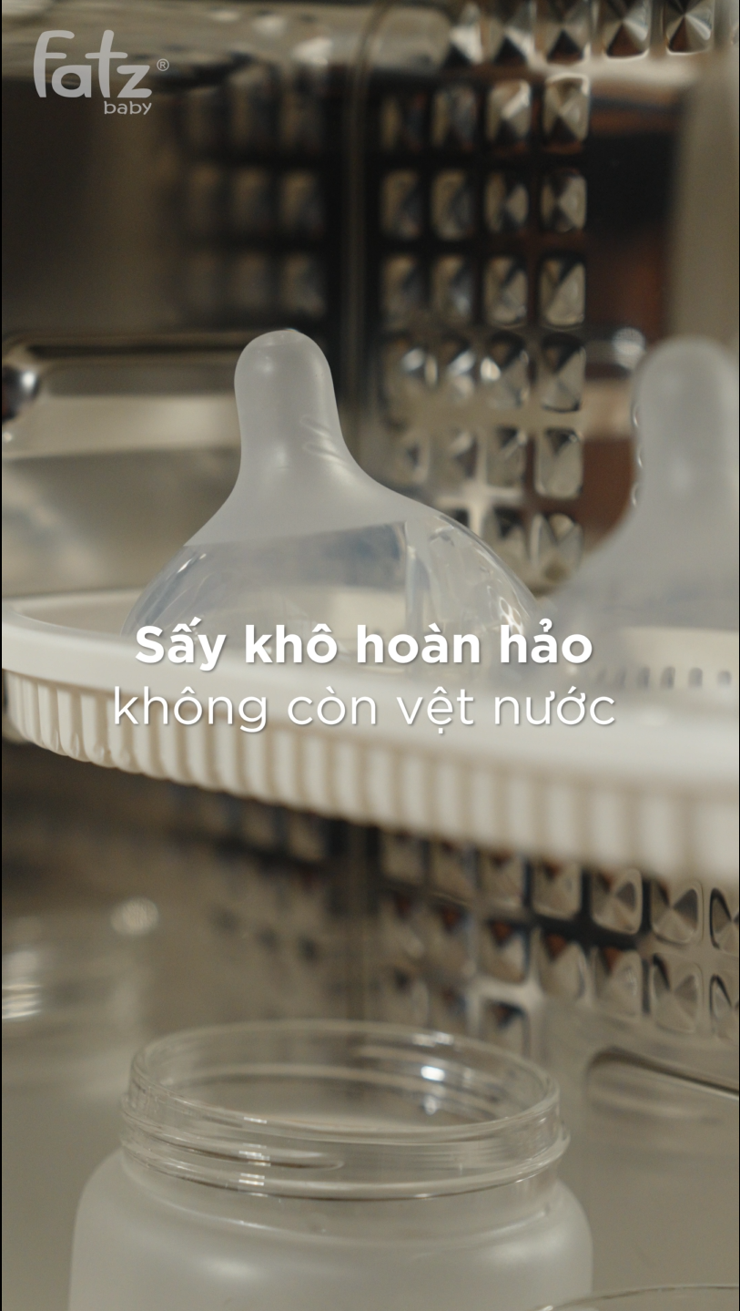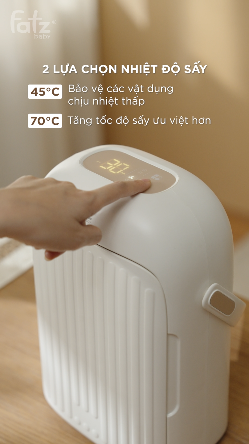 Sau khi hoàn tất tiệt trùng, chức năng sấy khô giúp loại bỏ độ ẩm còn sót lại, hạn chế môi trường thuận lợi cho vi khuẩn tái phát triển. Đồng thời, chế độ bảo quản cho phép duy trì trạng thái vô trùng của vật dụng trong thời gian dài, giúp bố mẹ không cần tiệt trùng lại quá nhiều lần trong ngày, đặc biệt tiện lợi với những gia đình có lịch sinh hoạt bận rộn.