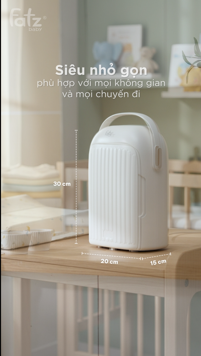Với kích thước nhỏ gọn và trọng lượng nhẹ, Mini-King 1 dễ dàng mang theo trong các chuyến đi, từ về quê, du lịch cho đến những buổi dã ngoại ngắn ngày, hoặc đơn giản là khi mẹ cần một dụng cụ tiệt trùng – sấy khô đặt gọn gàng được trong không gian nhỏ của bé. Quai xách tiện lợi giúp việc di chuyển trở nên nhẹ nhàng, không cồng kềnh như các dòng máy tiệt trùng truyền thống. Nhờ đó, bé luôn có bình sữa sạch khuẩn ở bất kỳ đâu, giúp bố mẹ an tâm hơn trong mọi hành trình.