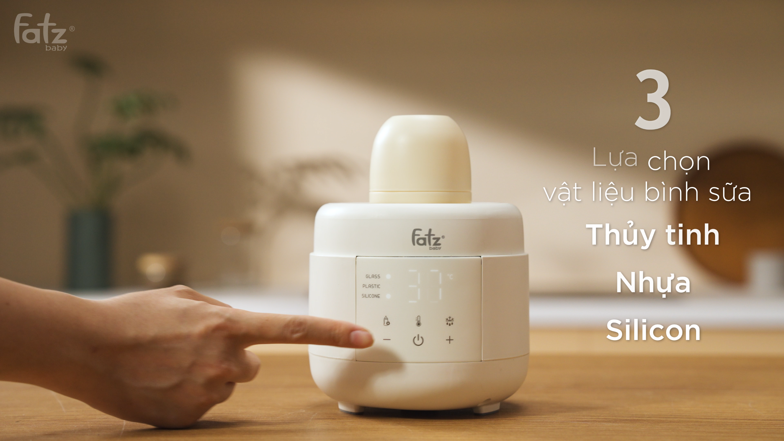 - Cài đặt vật liệu bình sữa: tự động tính toán thời gian và nhiệt độ phù hợp cho từng loại bình, tránh quá nhiệt hoặc nứt vỡ.